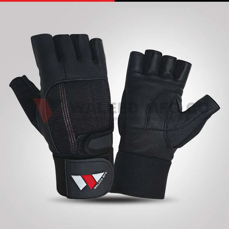 • Pro Wrist wrap Leather Gym Gloves